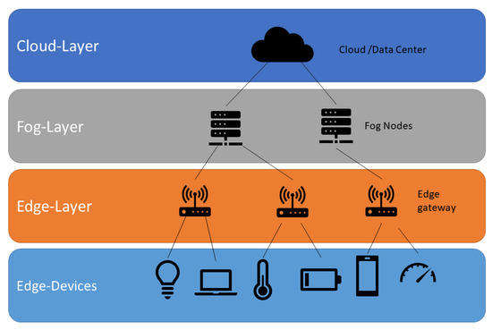 - Layer 2: Fog computing [4,5]. This intermediate layer provides an extra resources layer, such as computing power or real-time services, to the edge layer.
