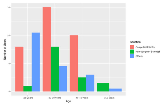 Comparing the job situation versus the age ranges for users who tested the LoT@UNED platform.