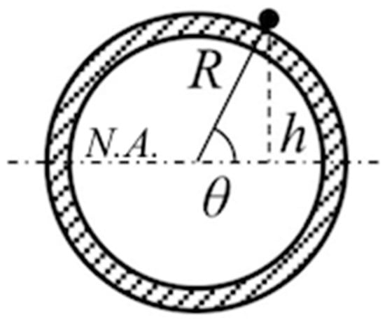 Schematic cross section of a pipe showing the main parameters of Equation (1): R, the outer radius; h, the distance from the neutral axis N.A.