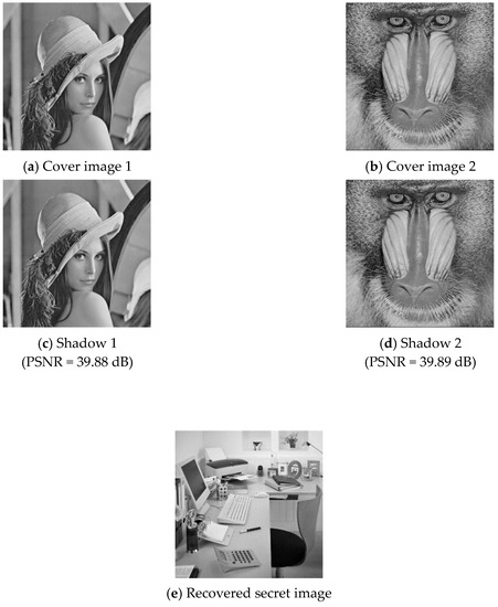 Before constructing secret shares of shadow images, the binary stream of secret message was converted to 16-ary secret set . Pixels of two distinct grayscale cover images with size are rearranged into and .