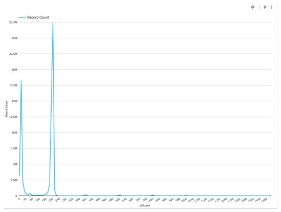 Consider the analysis in Figure 14, which shows that at 200 ms, samples can be picked, which also have around 1–5 ms. There is no large variance in the 200 ms time. The graph is like a spike graph for this case as all time difference are 200 ms and it is the top sampling timestamp during data collection. We have this kind of small samples because we can see the some of the pick at the very small number/small difference (400, 600, and 800 ms). If we observe the 400 ms sampling data amount then we can observe small number of missing samples and if we observe 600 ms sampling data amount then it means that continuously two succeeding samples are missed. Sometimes this missing pattern are random at any timestamp and sometimes it is continuously missing in two succeeding samples. So, we can see from realistic situation that randomly and continuous missing happens during any consecutive timestamp in the practical application.
