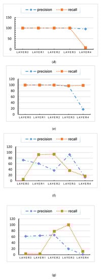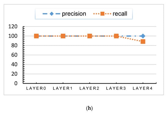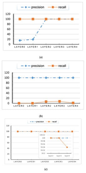As described above, the dataset was used to train the deep learning model for intrusion detection. Then, the data generated by the sample in the calculation process were clustered. The precision and recall results are presented in Table 1, Table 2, and Figure 6. The calculation result can be used to measure the correlation between the clustering result and the original classification result.