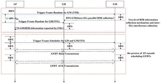 - In the second level, GHs report their GMs and their own BSR to AP if they have collected BSR in the first level. Otherwise, the GHs, with no collected BSR, dynamically update the inter-node interference intensity, which is almost real-time and improves the formation probability of a full duplex link.