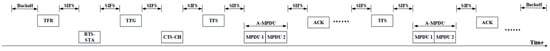 - Yang, M.; Li, B.; Yan, Z.; Yan, Y. AP Coordination and Full-duplex enabled Multi-band Operation for the Next Generation WLAN: IEEE 802.11be (EHT). In Proceedings of the 2019 11th International Conference on Wireless Communications and Signal Processing (WCSP), Xi’an, China, 23–25 October 2019; pp. 1–7. [Google Scholar]