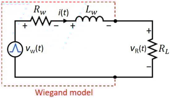 A simplified electrical model of the Wiegand sensor has been discussed [,], with the Wiegand pulse approximated by a triangular pulse, as shown in Figure 4.