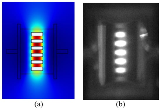 The micro-hotplate [26,27,28] used here is constructed using polysilicon (Poly-Si) thin-film sandwiched between two silicon nitride substrates. Aluminum metal is used as the conducting electrode to the micro-heater. Figure 2a shows the electrodes connecting to the polysilicon membrane showing the cut-out sections or slits. When electrically energized, the micro-heater initiates warm-up due to electro-thermal interaction. There will be significant conduction losses from the body to the substrate and also some convection losses [29]. Energy will also be radiated from the surface, providing an effective blackbody (broadband) infrared source. Figure 2b shows the intensity distribution of the emitted radiation.