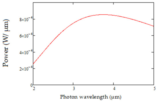 where h is the Planck’s constant, c is the speed of light, k is the Boltzmann’s constant and λ the wavelength of the electromagnetic radiation. The net source spectral radiant power is then estimated at a specific source temperature TS, by integrating the total black body radiation over the whole area of the micro hot plate. It is modeled as shown below in Figure 6.