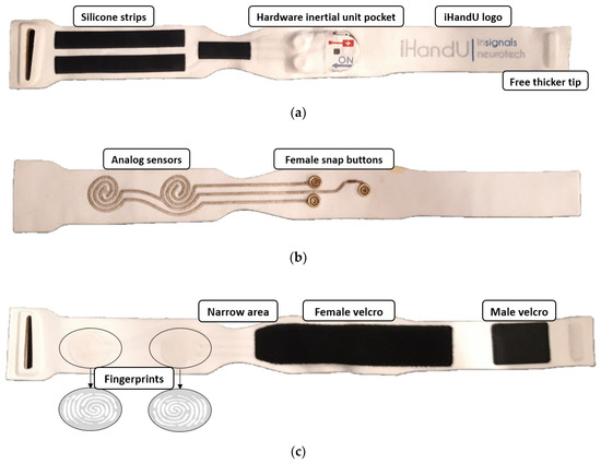 Textile band adaptation with new details to be suitable for the iHandU system. (a) Inside layer; (b) Middle layer; (c) Outside layer.