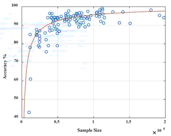 Sample size vs. accuracy showing that classification accuracy improves drastically when the sample size (0–4000) increases.