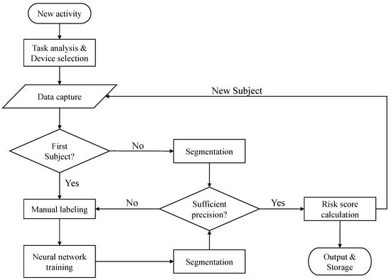 Flowchart of the risk evaluation procedure for a new working activity. The procedure takes into account possible iterations on the training of the neural network for automatic segmentation of the activity.