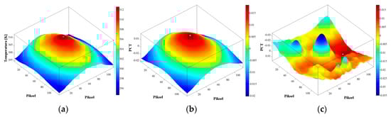 Comparison of the results obtained from raw data and using PCT: (a) Thermogram; (b) EOF1; (c) EOF2.