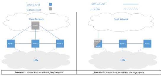 Virtual DoDAG Root placement scenarios.