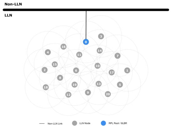 - Winter, T.; Thubert, P.; Brandt, A.; Hui, J.; Kelsey, R.; Levis, P.; Pister, K.; Struik, R.; Vasseur, J.; Alexander, R. RPL: IPv6 Routing Protocol for Low-Power and Lossy Networks. RFC 6550 (Proposed Standard), March 2012. Available online: http://www.rfc-editor.org/info/rfc6550 (accessed on 1 July 2020).