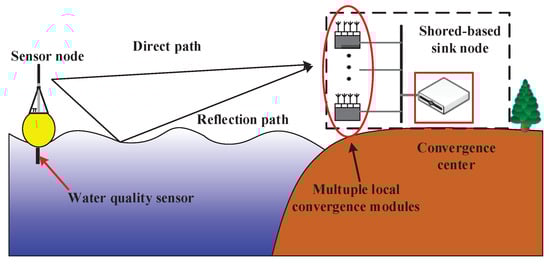 The maritime wireless sensor networks macrodiversity reception platform designed in this paper is mainly composed of sensor node and shore-based sink node. The architecture of maritime wireless sensor networks is shown in Figure 1. The sensor node floating on the sea collects the seawater information in real time and transmits it to the shore-based sink node in a fixed time interval. The shore-based sink node is based on macrodiversity reception scheme and consists of multiple local convergence modules and convergence center. A plurality of local convergence modules are placed at different locations on the shore to receive package. The convergence center connects with multiple distributed reception nodes and receives packages from each distributed reception node for combining to against multipath fading effectively.