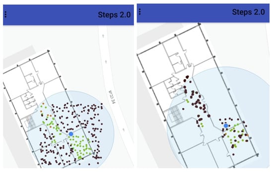 In this subsection we cover the overall performance of the suggested STEPS framework in terms of energy consummation and privacy. Based on field experiments, the implementation consumes approximately battery per hour, as running on Samsung Galaxy S8 with a screen “always on display” in low brightness state. We conclude that the energy consumption of the STEPS application resembles navigation applications and can allow a massive indoor navigation use of 2–3 h without draining the smartphone’s battery too much.