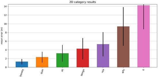 error in meters as tested in Microsoft Indoor Positioning competition 2018. The STEPS (benste) reached an average accuracy of 1.3 m.