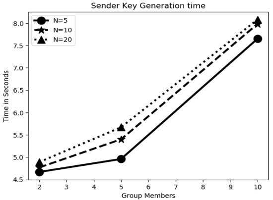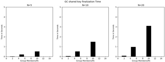 Figure 8 represents the time had spent in public conversation in order to finalize the key. Afterwards, GC finalized the key to individual user by performing the XOR operation on other n − 1 users. This computation time is presented in