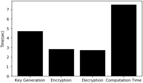 Figure 10 shows the secure communication time complexity between the data-collection agent and the department agent after collecting the doctor appointment dataset from the infrastructure layer. First, he derived the key with department agent using two-party quantum key agreement. Then, he encrypted the collected data using the key by doing the repeated XOR between the aggregated dataset and key. Next, the ciphered dataset was transferred onto department agent. The department agent collected the cipher dataset and then extracted the doctors appoint dataset using the key agreed with data-collection agent. Finally, the deciphered appointment dataset was stored onto the database. In the overall process, four phases were mainly involved: key agreement time complexity, encryption time complexity, decryption time complexity and overall computation time complexity. From the graph we can observe that more time was required for the key agreement phase than the encryption/decryption phase. Multicast and broadcast secure healthcare data sharing can be done using QDGKA—along with the encryption and decryption procedures specified in this paper.