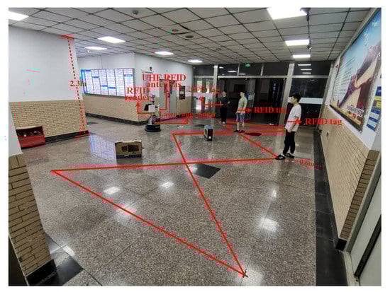 Dynamic objects localization approach is widely used in intelligent monitoring, human-robot interaction, virtual reality, and robot navigation. Typical methods for localizing dynamic objects using RFID systems are the LANDMARK-based approach [24], the SpotON-based approach [25], and the VIRE(VIrtual Reference Elimination)-based approach [26]. When the LANDMARC system is used for localization, there is uncertainty in the selection of the number K of neighbor labels. Besides, it is necessary to add additional reference tags in order to obtain a more accurate localization result, but too many tags will cause signal interference between tags, which will affect the positioning accuracy of the system. The SpotON method measures the RSS of a series of tags, and establishes the regression equation of the distance between RSS and the tag to the reader antenna, and then estimates the distance from the target to the antenna through RSS, and finally determines the location of the target by trigonometry using the ranging information of multiple antennas. However, RSS distance model needs to be built in advance, which is a heavy workload. The VIRE algorithm uses linear interpolation to replace the virtual position with the real position to improve the system accuracy. However, the real RSS value changes non-linearly. There is an error between the virtual position and the real position while using linear mathematical interpolation. In addition, the VIRE algorithm does not have a good localization effect on the border area. The calculation cost will be increased if additional real labels are added to the border area.