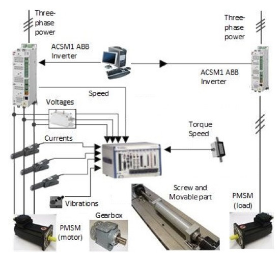 Thus, the use of PMSM is being increased in the industry [4]. In this regard, PMSMs coupled to multiple mechanical components, such as screw shafts, external bearings, couplings or multistage gearboxes, represent common industrial EMDS subjected to multiple operating conditions. In fact, due to such variability in the constitution of the systems and their working cycles, it is difficult to carry out a proper characterization of eventual faults.