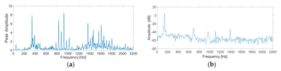 Corresponding spectra of: (a) vibration and (b) current signals.