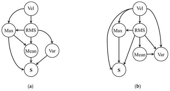 Bayesian network structure: (a) open operation; (b) close operation (Vel: velocity, Max: Maximum, Var: variance, S: door state).