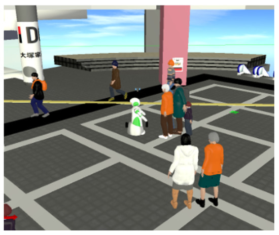 - Satake, S.; Kaczmarek, T.; Brščić, D.; Kanda, T. Facilitating software development for mobile social robots by simulating interactions between a robot and pedestrians. In Proceedings of the 2019 14th ACM/IEEE International Conference on Human-Robot Interaction (HRI), Daegu, Korea, 11–14 March 2019; pp. 626–627. [Google Scholar]