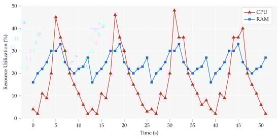 Resource consumption has been analyzed at edge gateways to check the required resources to handle the transaction validation. Figure 4 shows the percentage usage of RAM and CPU along Y-axis. These results are calculated during transaction validation as well as in an idle condition. In the idle condition, the percentage usage of RAM is 17% as an average, and during transaction, an increase of 10% to 15% is shown. Overall, on average, it used about 26% of RAM resources whose impact on overall system memory usage is not significant during a transaction. However, sharp peaks can be seen in the CPU utilization; in the Idle condition, only 8% CPU resources were used as average, while during a transaction it used up-to 45% of the total. The CPU variance at idle time was of about 10% and about 5% at peak usage.