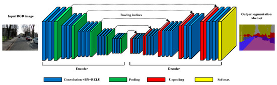 - Badrinarayanan, V.; Handa, A.; Cipolla, R. SegNet: A Deep Convolutional Encoder-Decoder Architecture for Image Segmentation. IEEE Trans. Pattern Anal. Mach. Intell. 2017, 39, 2481–2495. [Google Scholar] [CrossRef]