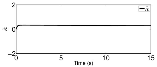 where denotes an estimation and its estimation law is specific later, the function of is given in (8) by replacing variables with , is a positive-definite matrix, and I denotes an identity matrix with an appropriate dimension. The estimation laws for (14) and (15) are designed as