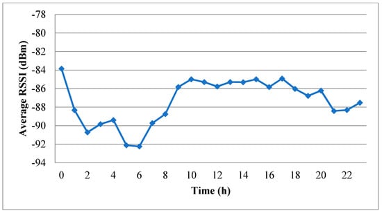Average Received Signal Strength Indicator (RSSI) value in each hour of the experimental measurement period.