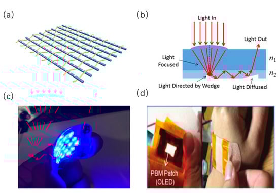 - Jeon, Y.; Choi, H.-R.; Lim, M.; Choi, S.; Kim, H.; Kwon, J.H.; Park, K.-C.; Choi, K.C. A wearable photobiomodulation patch using a flexible red-wavelength oled and its in vitro differential cell proliferation effects. Adv. Mater. Technol. 2018, 3, 1700391. [Google Scholar] [CrossRef]