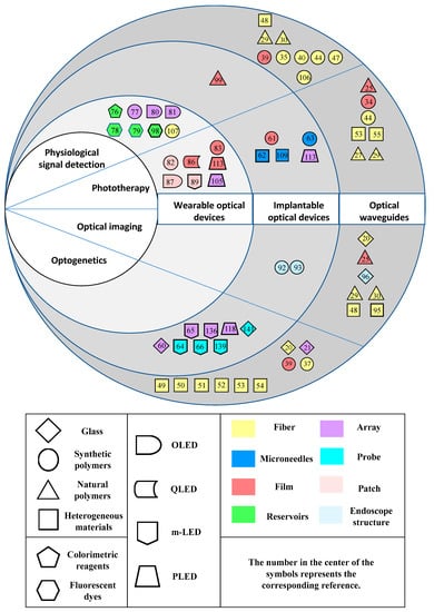 The biocompatible optical devices function as the media between light and tissues during the process of real-time sensing and therapy. In the past decades, the development of biocompatible materials and microfabrication techniques has endowed the biocompatible optical devices with more abundant and diverse functions [14,15,16].