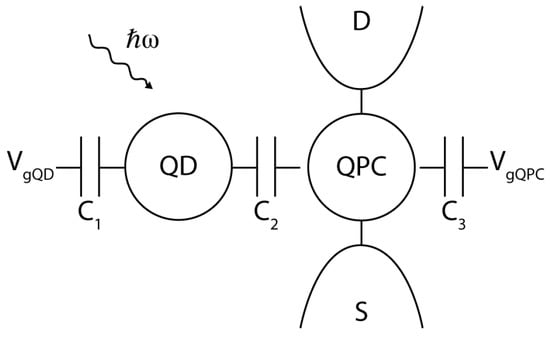 Coupling with acoustic phonons is strong in DQDs and represents the primary source of dark counts of the detector []. This effect is more pronounced in nanostructured DQDs, where strong electron–phonon coupling follows as a consequence of tight electronic confinement and characteristic phonon environment of the nanostructures [,].