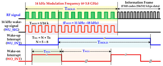 - Choi, J.; Lee, K.; Yun, S.; Lee, S.; Ko, J. An interference-aware 5.8 GHz wake-up radio for ETCS. In Proceedings of the IEEE International Solid-State Circuits Conference, San Francisco, CA, USA, 19–23 February 2012. [Google Scholar]