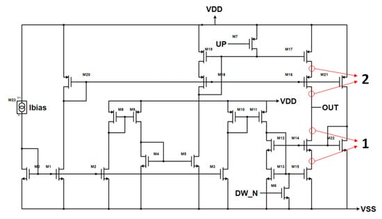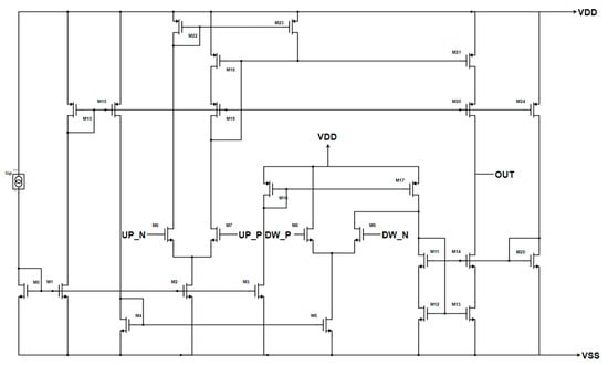 - Zhang, C.; Au, T.; Syrzycki, M. A high performance NMOS-switch high swing cascode charge pump for phase-locked loops. In Proceedings of the IEEE 55th International MWSCAS, Boise, ID, USA, 5–8 August 2012; pp. 554–557. [Google Scholar]