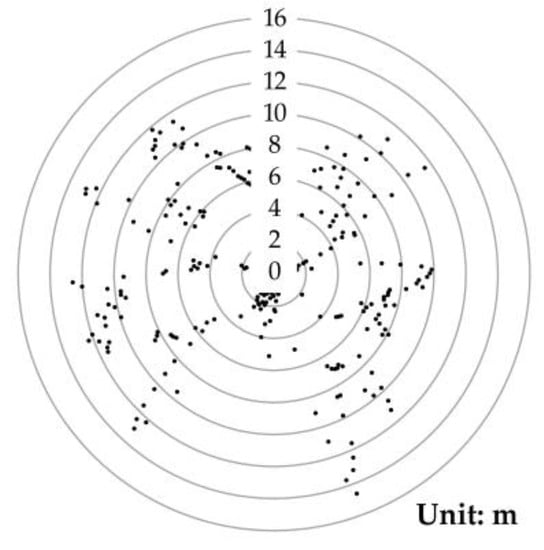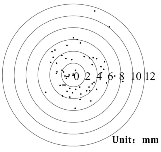 The performance of the differential positioning was validated by setting a network with a single MN and a single SN, 10 m apart. After the successful positioning of the SN, the latitude and longitude information were recorded 60 times. The arc distance between the SN and the MN was calculated. The distance differences were drafted in a radar format, as shown in Figure 8. It can be seen that the errors of the relative position of the SN and MN were at the mm level. Therefore, high precision self-positioning can be realized using the new cable-less seismograph system.