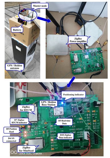 The MN of the system was designed as a multi-functional electromechanical box, which acted as a manager and base station. It was responsible for the PAN control, RTCM distribution, and seismic data uploading to the master computer. The SN of the system, namely cable-less seismograph, which acted as an acquisition and rover station, was responsible for the differential positioning and seismic data transmission to the MN.