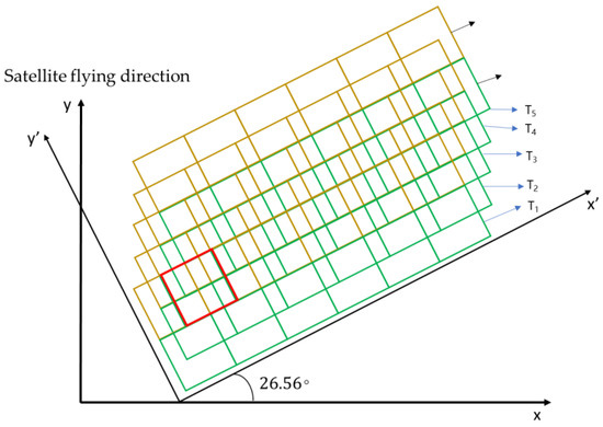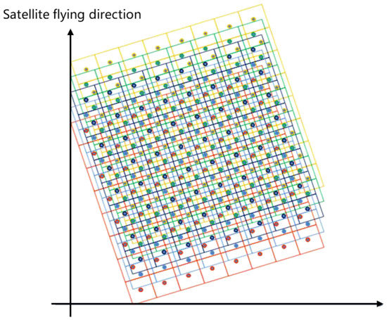 In China, Zhou, C. P. [12] (pp. 1–27), [13] proposed the satellite oblique-mode sampling method, which combined satellite hardware with ground-based image processing software to improve the spatial resolution. By tilting the linear array detector 45° and adjusting the integration time, Zhou, F. [14] improved the resolution of the sampled image by about 1.64 times compared with that before rotation.