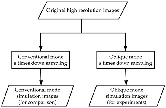 The design of imaging simulation mode is based on the theory of image down-sampling. Down-sampling is an operation that reduces image resolution by using image interpolation algorithm to reduce image size. For an image which size is , the resolution is reduced by . times, and the image size is reduced by . times. The flow chart of the imaging simulation mode is shown in Figure 3.