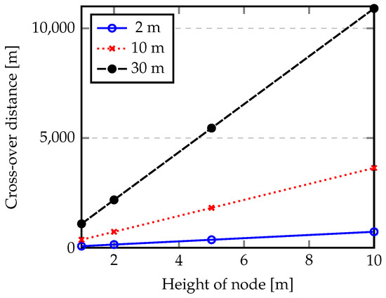 Evaluation of cross-over distance according to heights of the gateway and nodes.