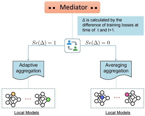 Hence, we consider the incentive combination of FedAvg and adaptive aggregation to improve the training process. Through the alternative of two algorithms dynamically, randomization is introduced to avoid one specific method that can deteriorate the aggregation performance and global model’s generalization. As a matter of course, the server can learn the embedding feature space preferably with the alternate aggregation method. As is shown in Figure 2, after each round of local training, the server model calculates the training loss to compute the difference compared to last one. The training loss of server model is achieved by averaging local model losses. The incentive scheme is designed based on alteration between two adjacent loss values. The scheme on how to proceed the alteration can be defined as: