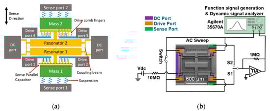- Zhao, C.; Wood, G.S.; Xie, J.; Chang, H.; Pu, S.H.; Kraft, M. A Three Degree-of-Freedom Weakly Coupled Resonator Sensor With Enhanced Stiffness Sensitivity. J. Microelectromech. Syst. 2015, 25, 38–51. [Google Scholar] [CrossRef]