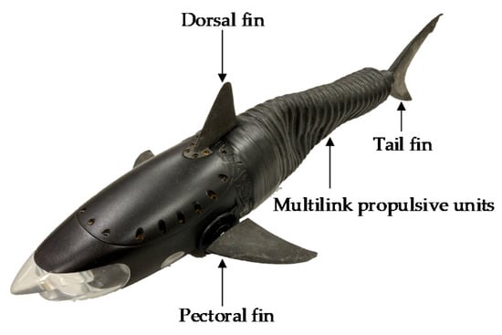 - Yang, X.; Wu, Z.X.; Yu, J.Z. Design and implementation of a robotic shark with a novel embedded vision system. In Proceedings of the 2016 IEEE International Conference on Robotics and Biomimetics, Qingdao, China, 3–7 December 2016; pp. 841–846. [Google Scholar]