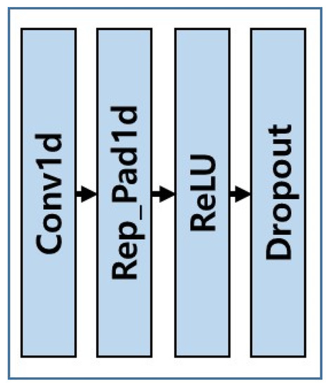One Conv Set is composed of one-dimensional convolution layer, one-dimensional padding layer, one ReLU, and one dropout layer, as shown in Figure 2.