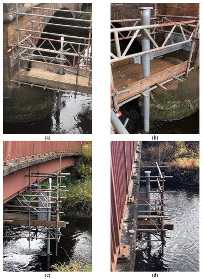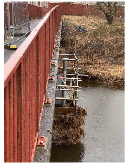 - Kariyawasam, K.K.; Fidler, P.R.; Talbot, J.P.; Middleton, C.R. Field Deployment of an Ambient Vibration-Based Scour Monitoring System at Baildon Bridge, UK. In Proceedings of the International Conference on Smart Infrastructure and Construction (ICSIC) Driving data-informed decision-making 2019, Cambridge, UK, 8–10 July 2019; pp. 711–719. [Google Scholar]