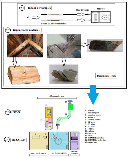 Indoor air quality (IAQ) is strongly affected by volatile organic compounds (VOCs) in the air, which are emitted from building materials and furnishings. These VOCs have an adverse effect on the health and comfort of users. Research conducted by Wargocki et al. [1] shows that poor air quality has a negative effect on users who stay indoors temporarily, like office workers and students. For this reason, there is growing demand for technical devices to measure [2] and control IAQ [3]. In recent years, research activities have also been carried out in several environmental fields to investigate human odor perception and the recognition of active odor compounds [4,5,6,7,8,9]. Some studies have focused on the evaluation of the impact of odorous compounds on the quality of the indoor air environment. VOCs emitted from floor layers in residential buildings can affect indoor air quality in terms of odor annoyance, and can have other adverse effects on human health. In this context, taking into account the comfort and health of users, it is advisable that the quality of air and the internal environment is determined for the building using the research methods presented in publications [10,11].