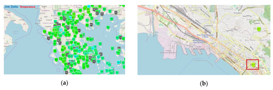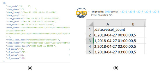 Open data is a key element in the relationship between the Smart Cities and Smart Ports. Reference [22] describes open data initiatives as part of the efforts by governments to provide transparency, better empower citizens, foster innovation, and reform public services by investigating the impacts of open data innovation on different Smart City domains like the economy, education, energy, the environment, governance, tourism, transport and mobility. Reference [23] explains that open data is not only global data collected and opened by the government, but also includes data shared among individual citizens and industries with the government and public. Related with this paper experiment’s domain, reference [24] analyses the current and future situation of open data in Smart Ports. It summarises the benefits of using open data for enabling typical applications in the port operations (e.g., truck gate appointments, vessel calls data management, yard operation scheduling or hazardous material tracking within the port premises), helping coordinate port operations to deal with unexpected delays caused by city issues like traffic congestion and a fluid exchange information between the port community and the port vicinity. However, a reluctancy of ports to release certain data to the community (researchers, other stakeholders) was also observed, especially those that concern business model operations or private protected data.