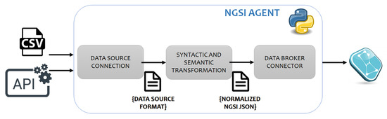 This block constitutes the basis of the CI calculation, aiming at converting data into actionable KPIs and make them ready to use is what the agents perform. NGSI prefix is used to explicitly state FIWARE compliance. It is worth to mention that the NGSI agents’ development is an action that will deviate from one “Smart Port-City composite index” use-case to another. As data will be different, the treatment at this level will vary and it will be needed a careful, tailored analysis to handle the development of the agents. The functions that all NGSI agents must provide are the following:
