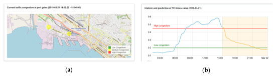 The framework developed has been applied and deployed in a real Smart Port-City (Thessaloniki), thus providing a legitimate testbed. Additionally, the work in this paper has usability potential as an IoT solution for mission-critical infrastructures of the Smart City, as the port and its interface with the city can be considered as such [21]. Besides, the work has advanced in the definition of semantic modeling of city knowledge, specifically in the traffic congestion realm. Finally, one of the last objectives of this work is to apply time-series forecasting over traffic and city data, clearly seeking to extract knowledge using machine learning (ML). In particular, it focuses on both understanding phenomena from historic data and catering to short-term prediction decisions using real-time data.